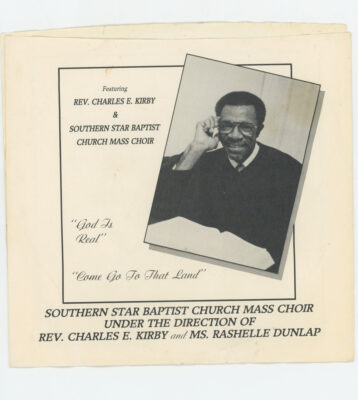 Rev. Kirby became renowned for his singing and began recording gospel records in 1961 and continued into the 1980s. “Lord Come On” was recorded live at Southern Star for Cincinnati’s Vine Records for the LP of the same title, and Rev. Kirby is accompanied by the Southern Star Baptist Church Mass Choir of both “Lord You Been Good To Me” and “God Is Real,” which were released on DJS and JT Music, respectively.