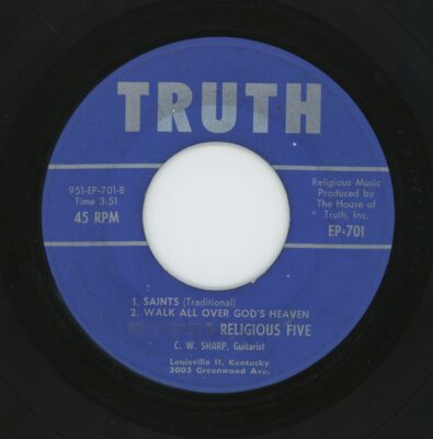 Before forming The Traveling Echoes, Laura was a founding member of The Golden Echoes from 1938 to 1946 (and again from 1951 to 1952) and a member of the Carnation Quintette from 1946 to 1951. James was a member of several quartets including The Moonlite Travelers. In 1967, the Ridleys moved from Louisville to South Bend, Indiana, where James became assistant minister at Mt. Olive Baptist Church. Laura died in 1970, and the group’s fourth and final album, released later that year, was named In Memory of Laura. Mr. Ridley later became the pastor of Bethlehem Missionary Baptist Church in nearby Niles, Michigan, a role he held until his death in 1981.